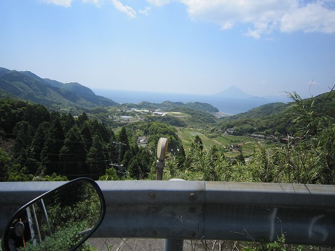 13:36 先を急ぐ 県道68号を南下し続け佐多伊座敷の街が近づくと、右手錦江湾側の視界が所々開けてきます。 錦江湾を挟んで対岸に、薩摩富士の名前でしられる開聞岳がうっすらと見えています。 お腹が空きました。 さあ、伊座敷の集落まで急ぎましょう。 2時を過ぎると、中休みに入ってしまうかもしれません。 |