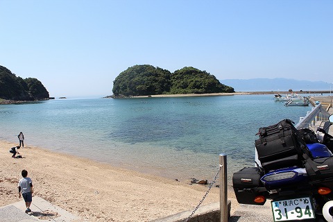 10:18 ひょっこりひょうたん島 砂浜の脇にある防波堤の上にバイクを駐車。 沖に見える島が記憶に残っていた島で、40年以上前と全然変わりません。 『懐かしいなぁ〜。』 沖に浮かぶ島名前を知らなくて当時は”ひょっこりひょうたん島”って呼んでたけど、ネットを見たら”ヨゴセ島”と言うらしい。 40数年経って初めて知った。 そのヨゴセ島が天然の防波堤となって、海水浴場は波も穏やか。 遠浅で、島までの3分1くらいまでは歩いて行けて、その後島まで泳いで行ったものです。 今見ると、島までは200mくらいはあるかな。 小学生の頃だったけど、結構泳げてたんだね。 書いていて思いだしたけど、昔は沖に飛び込み台があったなぁ。 |