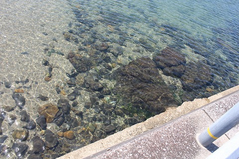 10:18 透明度 防波堤からのぞきこむ、海の水がきれいだ。 夏場になると、もう少し富栄養化が進んで、透明度が下がると思うけど、こんなにきれいだったんだね。 |