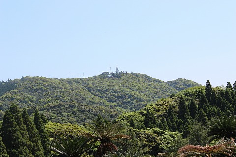 10:55 灯台が さらにしばらく走っていくと、山頂付近に灯台が見えてきました。 どうやらあれが”都井岬灯台”の様です。 山の高さに比べて、灯台の大きさが地味。 |