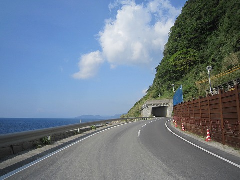 16:06 国道269号線で 佐多岬の駐車場を出て、行きに通った佐多岬ロードパーク経由で県道68号線で佐多伊座敷まで戻り、その後錦江湾に沿って走る国道269号線に入り北上します。 伊座敷から根占(ねじめ)の国道269号線は、片側1車線の全面舗装の国道です。 錦江湾に沿って走り、細かなコーナーや回り込んだコーナーはほとんどなくアップダウンも少ないので、スポーツライディングを楽しむと言うより、景色を眺めながらクルージングするのに最適なルートです。 |