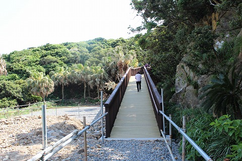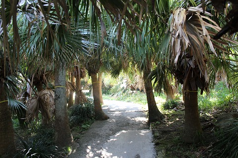 14:49 遊歩道 トンネルを抜け、遊歩道を歩いて進みます。 歩道は整備されていますが、それなりのアップダウンがあります。 ハイヒールでは厳しいと思います。 周りに生えている植物が、南国ですね。 まあ、でも駐車場からたかだか800mですから、駐車場から4km弱あって、”熊出没”なんて看板がある本州最東端のととが崎に比べると、全然ハードルは低いです。 少なくとも、熊はいませんから・・・・・・。 でもハブが出るか? (゜o゜; |