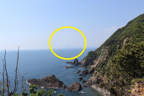 14:56 開聞岳は 佐多岬の展望台に到着しました。 まずは右手側から。 薄ボンヤリと、薩摩富士の開聞岳(かいもんだけ)。 肉眼の方がもう少し、はっきり見えるんだけど、写真だとほんとボンヤリ。 (笑) 一応、大隅半島の突端佐多岬からは、薩摩半島の突端にある開聞岳が見えますよ〜。とアナウンスしておきます。 |