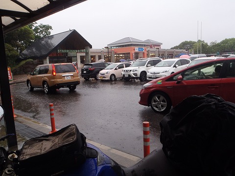 10:32 金立(きんりゅう)SA 玖珠SAから大分自動車道を鳥栖JCTまで進み、その後長崎自動車道に入り西走して佐賀県に入り、佐賀市にある金立SAまでやってきました。 途中から、土砂降り、しかも風も強く、暴風雨状態。 (>_<) ここまでひどい天候の中、今まで走ったことがないかもしれません。 排水性を十分考えて作られているはずの、高速道路のサービスエリアでも、路面にプールの様に水たまりが出来ています。 雨が降っているので、昨日までと違い涼しいです。 Tシャツにトレーナーそれにライディングウェアーを着て、その上にカッパを着てちょうどいいぐらいです。 昨日までとの寒暖差が激しいですね。 (-_-;) |