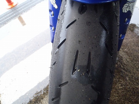 10:37 雨でも予想以上 さて、今履いているタイヤは MICHELIN で一般道は走れますが、サーキット走行を考慮した一番のハイグリップタイヤです。 サービスエリアに入って駐車すると、しばらくするとタイヤが乾いてきちゃいました。 タイヤの温度が高いんですね。 このタイヤ、ミゾの開口率(?)っていうのかな、タイヤのゴムの部分の面積に対して、ミゾの部分の面積がわずかに5%と少ないので排水性は期待できないです。 これで高速を走ると、水たまりでハイドロプレーニングみたいになるかと思いきや、予想以上にグリップします。 もともとハイグリップタイヤなのでグリップ感があり、普通のタイヤで雨の中を走るよりもグリップ感があって、安心感がありました。 雨の中でも、ゴムが柔らかい分タイヤの温度が上がってるんですね。 |