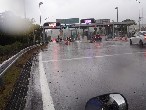 11:31 佐世保三川内(させぼ みかわうち)本線料金所 西九州自動車道に入りちょっとだけ西走、佐世保三川内本線料金所に到着です。 料金所、多すぎるぞ! 今はETCが出来て、お金を払う準備をしなくても良くなったけど、ETCがない時代だったら、この雨の中めんどくさくて、料金所を突破したくなる衝動に駆られるね。(笑) そう言えば、以前ETCがない時代、高速の入口でチケットを受け取って、出口で雨でクタクタになったチケットを出したら、料金所のオッサンに文句を言われ、口論になったことがあったなぁ〜。なんてことを思い出しました。 カメラのレンズに次々と雨粒が着いてきます。 (T-T) |
