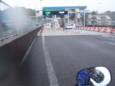 11:17 武雄南(たけおみなみ)料金所 金立SAで休憩した後も長崎自動車道を西走。 途中、武雄JCTで西九州自動車道に入ってすぐにある武雄南(本線)料金所までやってきました。 雨だというのに、途中の長崎自動車道は渋滞していて、ペースダウンを余儀なくされました。 やっぱり、ゴールデンウィークは混むのだ。 相変わらず、雨はジャジャ破り。 腕を伝ってカッパの中にも雨が浸水、上着の中は汗だか、雨だかわかりませんが、じっとりと濡れてしまいました。 (ーー;) |