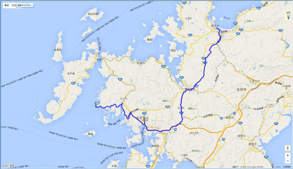 | 本土最西端〜唐津: 81.8 km | |