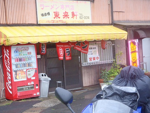 13:57 今日のお昼は ”本土最西端の地”を後にし、来た道を取って帰り県道18号線から県道139号線までもどってきました。 お昼を食べていないので、お腹が空きました。 ( ̄0 ̄) 途中、入れるお店が無いかと探しながら走っていると、県道沿いにラーメン屋を発見! お店の前にはクルマが数台駐まっています。 「この時間にお客さんが入っている様なら、きっと美味しいはず!」 それにこの手のお店だったら、カウンター席に座ってカッパのズボンを膝下まで下ろせば大丈夫そうだし。 と言うことで、今日のお昼はこのお店に決定! カッパの上着は脱いで、バイクにかけておきましょう。 ※ カッパのズボンを脱ごうとすると、靴も脱がなきゃならないん面倒なんですよね。 |