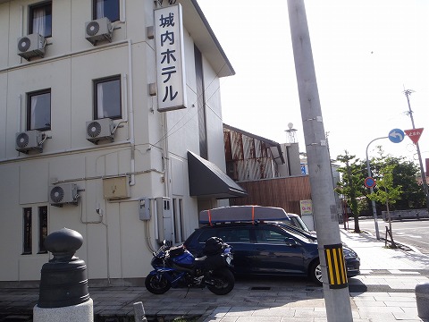 16:10 唐津に到着 ガソリンを給油した後、唐津市内にある今夜の宿”城内ホテル”に到着しました。 すでに雨は止んで、日が差しています。 なんだかんだで、いい時間になっちゃいましたね。 |
