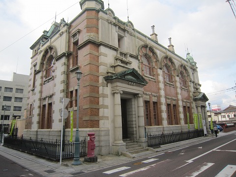 17:42 旧唐津銀行本店 城内ホテルからプラプラと唐津駅の方に向かって歩いて行きます。 途中、由緒正しそうな建物があったので写真を一枚。。 調べてみたら、旧唐津銀行の本店建物だそうです。 この旧唐津銀行本店の建物は、東京駅や日本銀行などの建物を設計した、唐津出身の辰野金吾に設計を依頼したそうです。 しかし、当時東京駅の設計に忙しく、実際の設計は弟子の田中実と言う人物が行いましたが、辰野金吾は設計の監修を行ったそうです。 そのため、建物はなんとなく東京駅や日銀の雰囲気が似ているんですね。 一地方都市の唐津が栄えたのは、明治時代の石炭産業による恩恵が大きいところで、唐津銀行は明治18年に設立され、昭和6年には合併して佐賀中央銀行に、さらに昭和30年には佐賀興業銀行と合併し佐賀銀行にと、佐賀銀行の源流となる銀行の一つでした。 とちょっとトリビア的なネタでした。 この歴史的建造物の旧唐津銀行本店の建物ですが、絵心が無いので、写真はせっかくの塔が切れています。 (ーー;) |