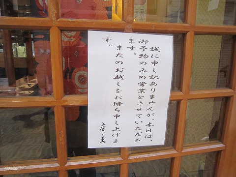 17:46 本日は 入ろうとすると、店の入口に張り紙が・・・・。 ”本日は御予約のみ・・・” (゜o゜;) ちゃんちゃん! 他に行くしかないじゃん。 (-_-;) 昨晩もそうだったけど、ゴールデンウイークはどこも混むね。 確実に行きたかったら予約した方が良いんだろうけど、予約すると時間どおりに動かなきゃならなくなるので、ソロ・ツーリングの時はできるだけ避けたいのよね。 ソロ・ツーリングのよさは、いろんなことに縛られないのがイイところだから。 まあ、お店側に責任はないよね。 備忘録として書いておくだけ。 |