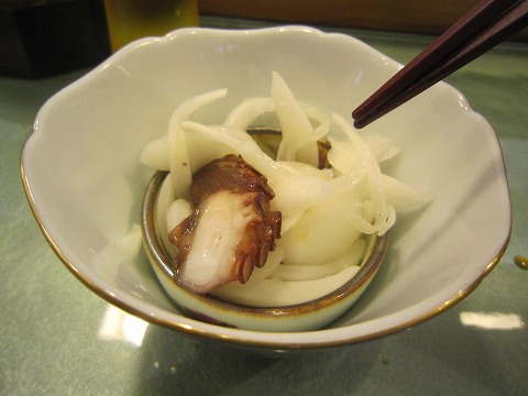 18:17 地ダコ 続いて地ダコ。 タマネギと一緒に甘酢で和えて。 タコは丁寧に茹でて処理をすれば、甘みがあって、歯応えが口に楽しい食材だと思います。 吸盤の食感が楽しいですね。 |