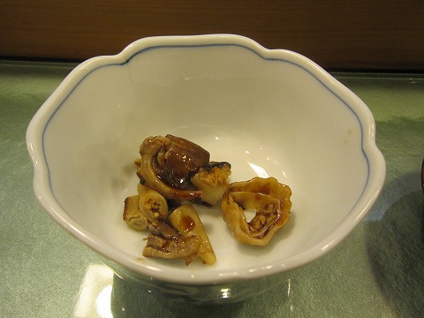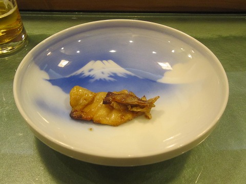 20:26 穴子の肝 もう、お腹もこなれているので、つまみに穴子の肝など。 呑んで、つまんで、話しをして、きりがありません。 もうすでに長っ尻になっちゃってますが、この手のお店で酔っ払い過ぎるのは無粋です。 なので、ぼちぼち終わりにしましょう。 |