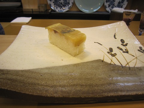 18:50 握りに つまみはここまで、ここからは握りになります。 まずは、アジの押し寿司。 やっぱり、ここのアジはちょっと違います。 クセが無くて美味しいですね。 昆布も一緒に押していたかな。 旨味が凄いですね。 |