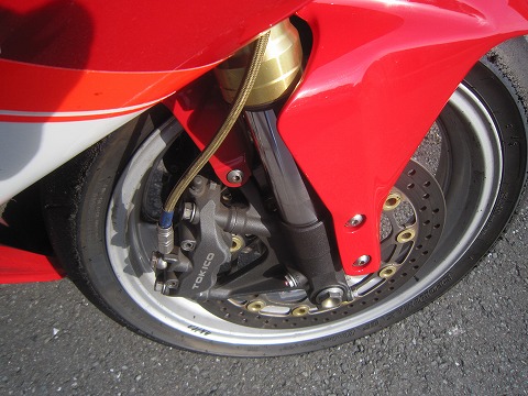 16:06 交換終了 反対側も、2枚ともBRAKINGに交換して作業は終了。 今度5月の17日にエビスサーキットで走行会があるので、そのときにブレーキのフィーリングを確認する予定です。 あと、前のCBRですが、マスターシリンダーは割れて使えませんが、キャリパーとかブレーキラインは使えそう。 金沢のS-GRIDの清水さんのところに置いてあるので、送ってもらうことにします。 |
