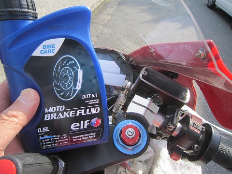 15:18 elf DOT5.1 交換するフルードは、elf の DOT5.1。 左右のキャリパーそれぞれ、リザーバータンク2回分のフルードをエアー抜きしながら交換。 最後にリザーバータンクにフルードを補充して終了です。 |