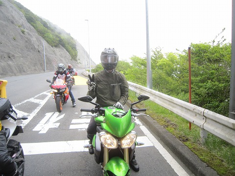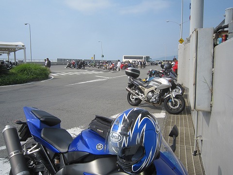 9:01 後ろも 前がクルマで詰まって、退屈なので、後ろも写真を撮ってみる。 後ろは、MAOHさんのBMとタグロンさんの隼ですね。 |