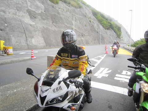 8:58 白のCBR 県道75号線からターンパイクの箱根伊豆連絡線に入り、湯河原峠料金所に到着です。 白いCBR600RRは、以前黄色いVTRに乗っていたみっちゃん。 VTRのときよりライディングが元気になりましたよ。 バイクが合っているんでしょう。 |