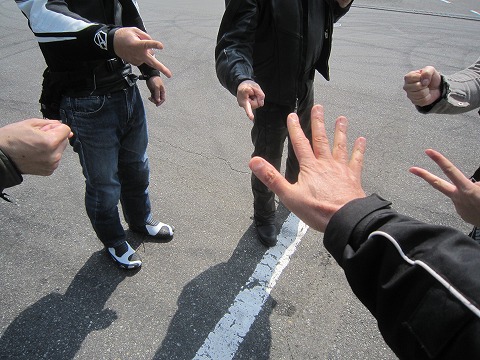 10:08 キーが! (゜o゜;) 集合場所からここまで、2時間弱走り、小一時間話し込んでいました。 今日は天気が良いので、道端で話し込みにはいい季候です。(笑) それでは、ボチボチ出発しましょう! って『キーがない!』 (゜o゜;) バイクに指しっぱなしにしておいたら、山口さん隠されました。 「バイクのキーは隠すヤツが居るから、駐車したら、ちゃんと仕舞おうね。」 (爆) |