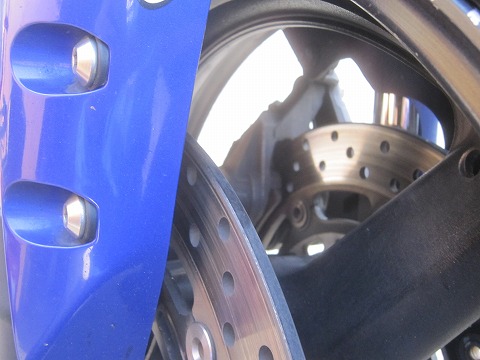5:55 パッドを点検 ちょっとその前に。 フロントのブレーキパッドを点検。 5月の九州ツーリング前に点検したのですが、そのときは残が3mm弱ぐらいだったけど。 九州ツーリングで2,800kmほど走った後、チェックしてませんでした。 チェックしたら、まだ2mmくらいは残っていたので、今日のツーリングは大丈夫でしょう。 でも、もぼちぼちスペアーを買っておかないとね。 |