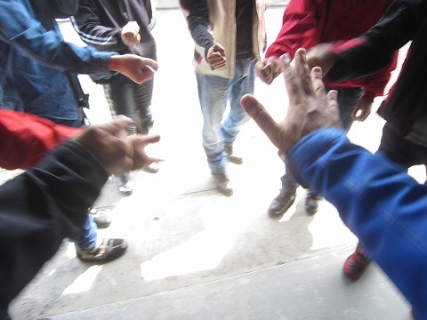 11:34 で で、自分は4人のグループでジャンケン。 『わっ!』っと、思わず、手を引っ込めてしまいました。 下に指が3本だけ見えるでしょ。 『パーです。』 で、他の3人は、チョキ。 『負けてしまいましたぁ〜。 』 (T-T) 4名様分 → 1,200円のお支払い。 (-_-;) |