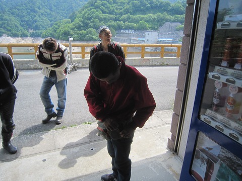 9:29 ジュースジャンケン さて、毎度のジュースジャンケンのお時間です。 こんな地の果てみたいなところにも、自販機があるんですねぇ。 しかも、観光地価格じゃなく、標準価格。(笑) 今日は9人もいるからね。 確率的に負ける気がしません。(笑) |