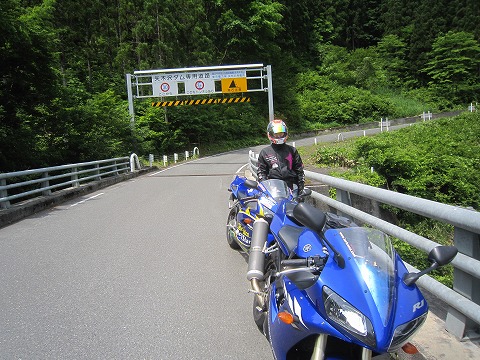 10:04 屋倉橋 矢木沢ダムを後にし、監理用道路を下りて屋倉橋まで下りてきました。 橋を渡ったところには、色々な標識が出ていますが、ゲートはもう少し手前にありました。 下を流れているのは、利根川。 利根川もこの地点では、川幅も狭く、沢沿いに流れる極々普通の川です。 帰りの監理用道路は、下り勾配でタイトターンが連続する箇所があります。 こう言ったところは、エンジンブレーキが効く2気筒のドカが有利。 4気筒のR1はアクセルをオフにしても、あまりフロントに荷重が移らないので、ちょっと遅れちゃいますね。 と言い訳を書いておこう。(笑) |