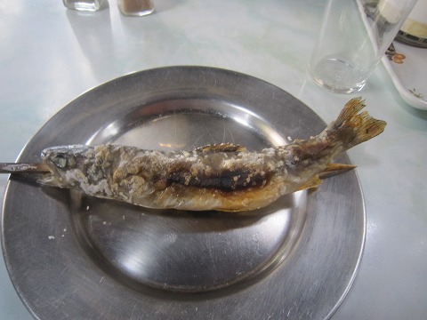 13:16 岩魚(イワナ)塩焼き なんて、余計なことを書いている間に、頼んだ岩魚塩焼き(¥600)が運ばれてきました。(笑) それでは、『いただきます。』 |