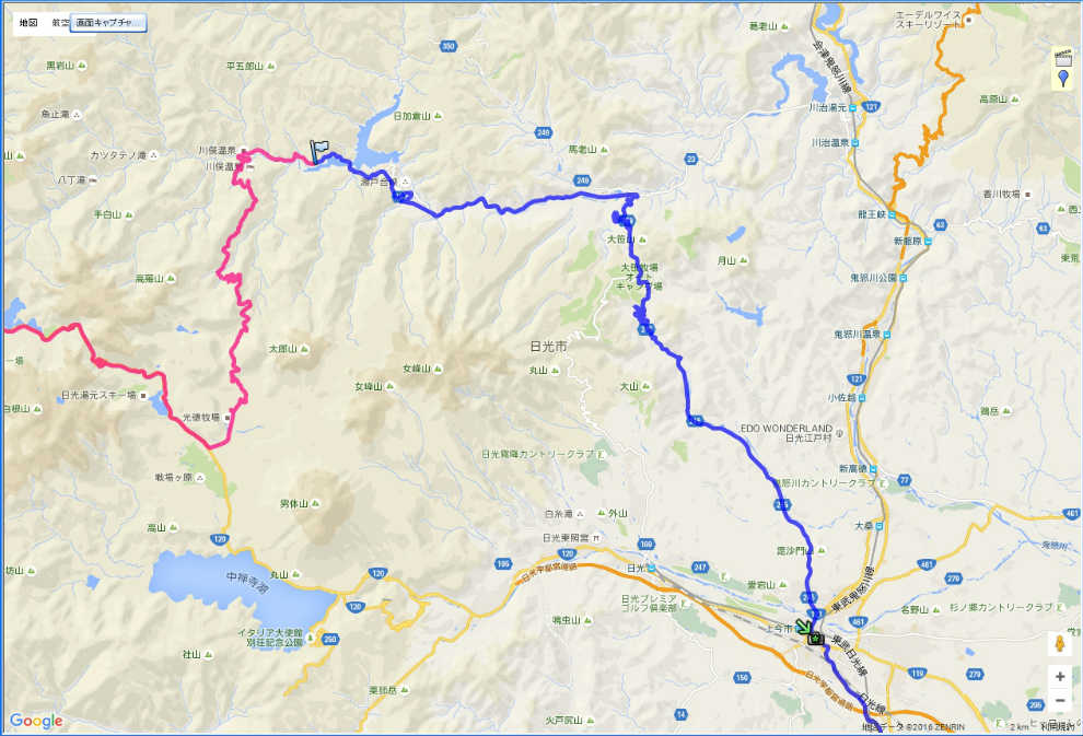 | 日光市川俣〜自宅まで: 252.6 km | |
