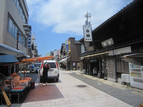 12:07 朝市の通りを歩く 朝市が行われている通りまで歩いてきました。 当然ですが、朝市はもうやってません。 昼ですから。( ̄。 ̄;) いくつかの露店が後片付けをしていましたす。 朝市をやっている通りには、普通の商店もあるわけで、朝市が終わってからお店を開ける様です。 が、写真で見た朝市のにぎわいはなく、歩いている人もまばらです。 昼食が出来そうなお店も、数えるほどしかありませんね。 |