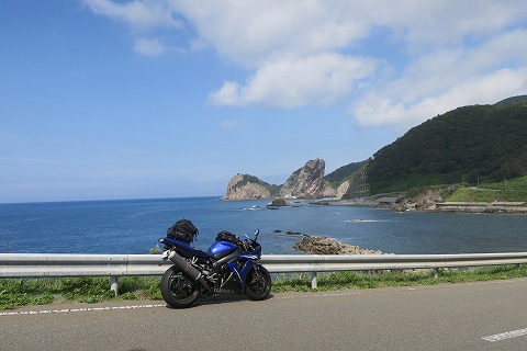 北東北ツーリング、3日目は青森県の西部にある深浦町から出発します。 今日は、午前中に陸奥湾フェリーで下北半島に渡る予定です。 フェリーの出航時刻は9:20、フェリー乗り場まで100kmほどの距離があります。 少し急ぎます。 |
