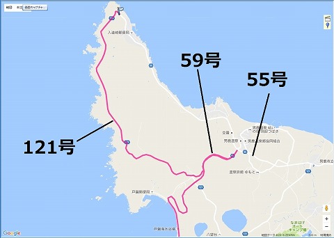 59号から121号へ 県道59号線を下の方から来て、そのまま進むと県道55号入道崎寒風山線(にゅうどうざき かんぷううざん せん)に突き当たります。 そのまま、左折して県道55号線に入れば入道崎に行けますが、ちょっと行きすぎた感じが・・・。 せっかくここまで来たから、走れる道は走っておかないとね。 Uターンして、県道121号入道崎八望台北浦線(にゅうどうざき はちぼうだい きたうら せん)に入り、北上して入道崎に向かいます。 県道121号線は入道崎まで、ほぼ民家なし、冬場の日本海からの風が強すぎるらしく木が生えておらず、周囲は草原です。 貸切の様な道を走りながら、入道崎を目指します。 |