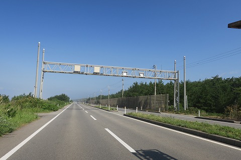 9:37 オービス? 県道56号線上には、写真のオービスらしきレーダーがありましたが、カメラが見当たりません。ちゃんと動いているかは不明です。 県道56号線を進むと、そのまま国道101号線に接続します。 県道56号線とこのこの先男鹿市までの国道101号線は中央分離帯のある片側2車線の道路です。 海岸線に沿って走るこれらの県道・国道は基本的に一直線、アップダウンもありません。 |