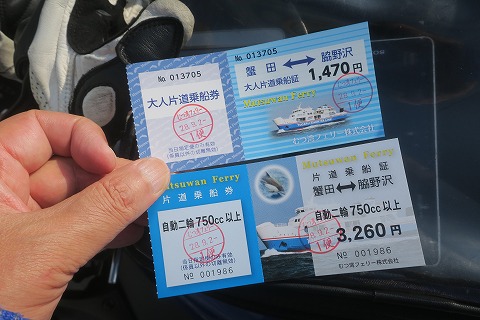 8:47 乗船券 乗船券を買ってきました。 バイク(自動二輪)は750cc未満と750cc以上の2区分。 自分のは1000ccで750cc以上なので、料金は高い方と言うこともあり、車検証の提示は特に求められませんでした。 バイク(750cc以上)は片道3,260円とちょっとお高め感が。 (ーー;) |