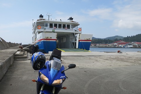 8:50 陸奥湾フェリーは 乗船券を買って、話しをしたら、フェリー乗り場に移動します。 バイクはクルマより先に乗船するので、先頭に。 今日はバイクは1台でした。 (9月の2日(金)の平日に、ツーリングして遊んでいる人間なんて、居ないみたいです。(笑) これから乗船する陸奥湾フェリーは結構コンパクト、ゴールデンウィークに大隅半島から薩摩半島に渡った際に載った”なんきゅうフェリー”といい勝負だ。 このフェリーの名前は”かもしか”、ホームページによると総トン数611トン、最大速力 13.75ノット、旅客定員240名、車両台数は乗用車20台またはバス4台と言うことは、なんきゅうフェリーより4倍くらい大きかった。(汗) |