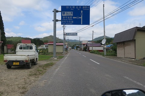 10:55 ピンぼけだぁ! 川内町(かわうちまち)で国道338号線から県道46号線に入り北上します。 ピンぼけになっちゃいましたね。 走りながらの撮影なので、撮った写真のチェックが出来ず、後から見たら残念、ピンぼけでした。 まだ、新しいデジカメを使いこなしていませんね。 他に写真が無いので仕様がなく掲載。 県道46号線は、この先県道253号線との分岐から先通行止めなので、県道253号線との分岐まで進みます。 この県道46号線は、国道338号線の脇野沢と佐井村の間が開通する以前から開通していた歴史があるそうです。 |