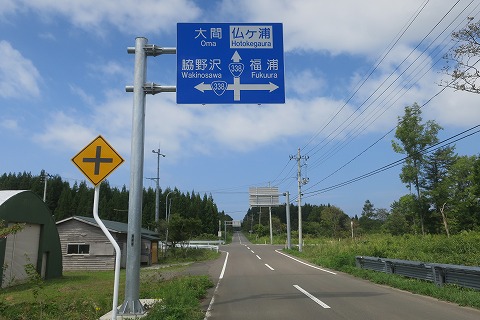 11:12 国道338号線に 県道253号線を東進し、ふたたび国道338号線との交差点に到着しました。 国道338号線は左から来て、90°左に折れて、直進方向に進む構成になっています。 道路看板によるとこの先左折すると、今日は通行止めですが、脇野沢に行くことができます。 またこの区間は冬期閉鎖の区間でもあります。 以前、ここを左折して脇野沢までの区間の国道338号線を走りましたが、かなりの酷道です。 豪雨により通行止めになるのも、うなずけます。 今日はここを直進して、大間 仏ヶ浦方面に進みます。 けど、今気が付けば、センターラインが県道253号線側から直進して国道338号線に向け交差点内も真っ直ぐ引かれていますね。 と言うことは、こっちが優先道路になります。 左から接続する国道338号線は脇道扱いなんですね。(笑) |