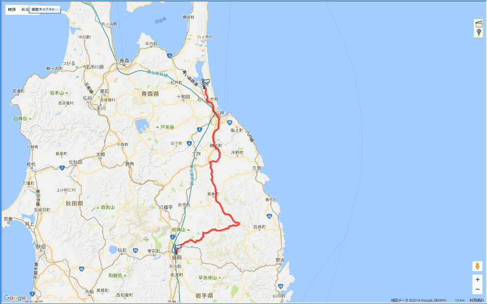 | 三沢市〜盛岡市:186.6km | |