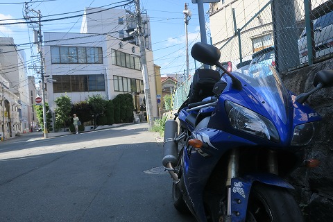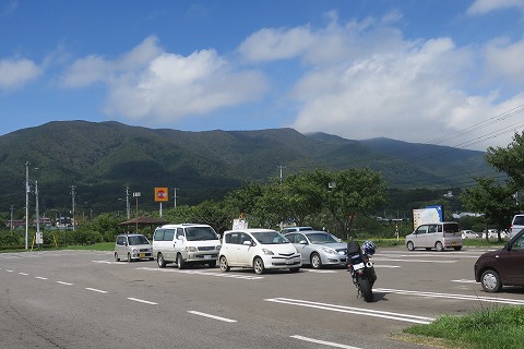 8:51 サイドスタンドが! 『サイドスタンドがめりこんでるじゃん!』 (゜o゜;) チェックアウトを済ませ、出発しようとバイクを停めてホテルの駐車場に来ると、暑さで柔らかくなったアスファルトにサイドスタンドがめりこんでいました。 ( ̄。 ̄;) 初日の転倒の悪夢が再来するかと思いましたぜ。(笑) このまま、リヤシートにバックを積むと、またセルフ転倒しそうなので、バイクをちょっと移動してから、荷物を積みます。 |