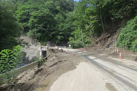 11:46 国道455号線も 国道455号線に入り、盛岡方面を目指し西走します。 この路線も被害の痕跡が残っていて、酷いです。 山から木が流れ出たり、川の氾濫により道路の一部が洗掘(せんくつ)され崩れていたり。 復旧にはまだまだ時間がかかりそうです。 一日も早く、復旧することを願います。 |