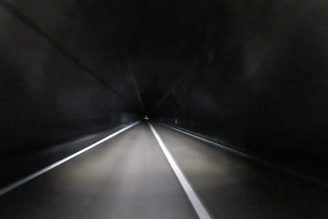11:51 早坂(はやさか)トンネル 国道455号線を西走すると、途中にトンネル。 『うわぁ!』っと、トンネルの中は真っ暗! ここも台風の被害で、照明が切れていました。 デジカメで撮ると、結構見えていますが、肉眼だと見えるのはヘッドライトで照らされた部分だけ。 路面も濡れていて、穴ぼこなんてあったら転倒しかねないので、真っ暗でも避けられるスピードで徐行。 このトンネルは、岩泉町と岩手市も結ぶ早坂トンネル、延長は約3キロほどあって、出口が見えません。 照明の無いトンネルってホント、真っ暗で走り難いですよ。 |