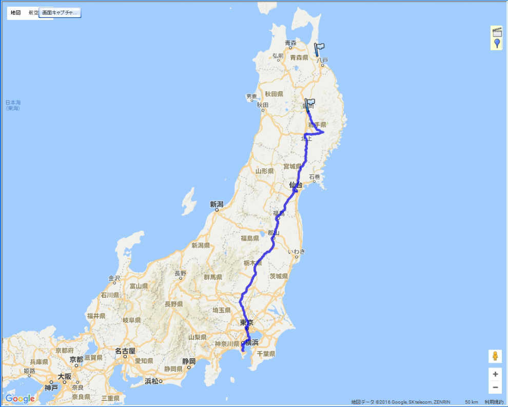 | 盛岡市〜遠野〜仙台市〜横須賀(自宅):691.0km | |