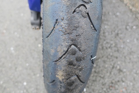 6:07 フロントタイヤを交換 で、まだ出発してないよ! (笑) 今までフロントに履いていたMICHELIN のcup EVO が寂しくなったので、サーキットでCBRが履いていたMetzeler のユーズドに昨夕交換しました。 MICHELIN のcup EVO フロントのライフはここまで、 47,096 − 39,011 = 8,085 km まだ、3分くらい山が残っているので、キープしておきます。 ケチだから。(笑) |