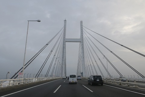 6:35 横浜ベイブリッジで定点観察 首都高湾岸線を北上し、いつものベイブリッジで、北の空の定点観察。 雲が多いですね。 雨は降らないって予報では言っていたけど、一応カッパは持ってきてます。 |