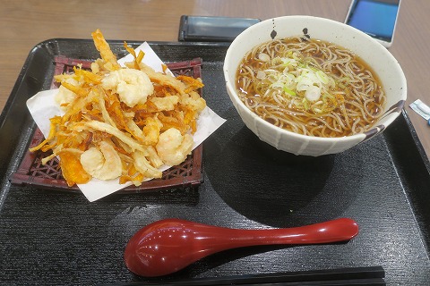 7:27 朝食 で、朝食をば。 守谷の下りSAで朝食が食べられるお店は、そば屋とラーメン屋、それにパン屋しかやってないんだね。 ご飯ものは無し。 昼がタンメンの予定なんで、朝もラーメンって言うのは避けたいので、そば。 温かいのを食べたいと思って、メニューを見てパッと目に飛び込んできた”海老の天ばらそば”を注文したら、1,000円だった。(汗) 海老のかき揚げなんで、そんなにすると思わず、値段を確認しないで頼んじゃいました。(汗) 朝から、贅沢な食事になっちまったぜ。( ̄。 ̄;) |