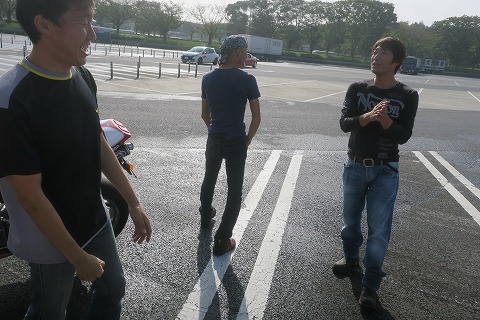 8:01 友部のサービスエリア 友部のSAでそばを食べつつ、スマホのgoogle map で友部までの距離を確認したら、60km! せいぜいサービスエリア1個分の45kmがいいところと、勝手に思い込んでいました。 所要時間を見ると、ちょっと流れが悪いみたいで、50分! 「まずい、ノンビリそばなんて食べてる場合じゃなかった。!」 急いで、味わう余裕も無く1,000円のそばを掻き込み、急いで守谷のサービスエリアを出発。 1分遅れで、他のメンバーが待つ友部のSAに到着。 『みなさん、おそろいの様で・・・・。』 (ーー;) |