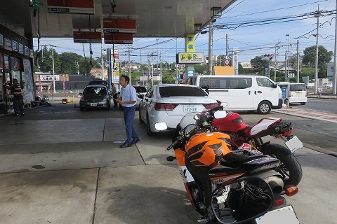9:07 ガソリンを給油 友部ICからは、国道355号線に入り北西に走り、笠間の駅前を通過して国道50号線との交差点にあるガソリンスタンドまでやってきました。 ここからしばらくは通り道にガソリンスタンドが無いので、ここで今日1回目のガソリンを給油します。 |