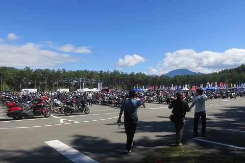 10:37 富士北麓駐車場 年2回恒例のツーリング、今回はナップス主催のツーリング・イベントをやっていると言うので、富士吉田にある富士北麓駐車場にやってきました。 目星のイベントは11時から、ちょうどいい時間に到着しました。 駐輪場にバイクを駐め、イベント会場に向かいましょう。 |