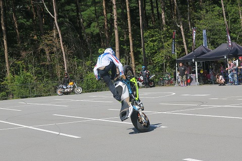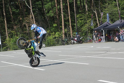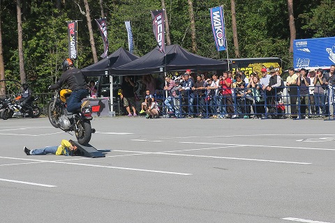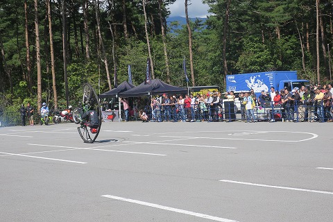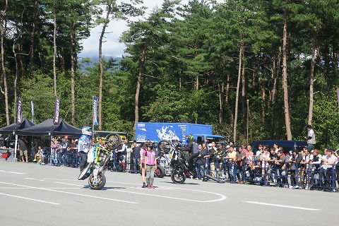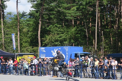 10:52 イベント・エリアでは イベント・エリアにやってきました。 ちょっと前まで、試乗会みなたいのをやっていましたが、今は11時からエクストリーム・ショーの準備。 ウォーミング・アップをしているみたいです。 |